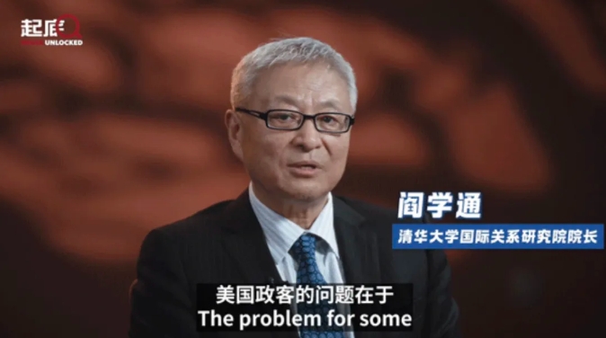 清华大学国际关系研究院院长阎学通表示:“美国政客的问题在于,他们想要保持美国的全球领导地位,他们因为中国的崛起而指责中国,因为美国无法再像以前一样享受霸权地位。”