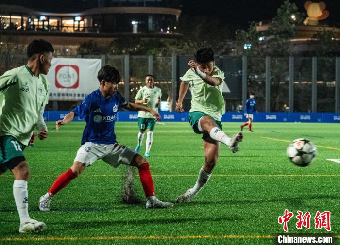 图为雪域雏鹰队队员(浅绿衣)和香港东方U16队队员在场上比拼。 中新社记者 侯宇 摄