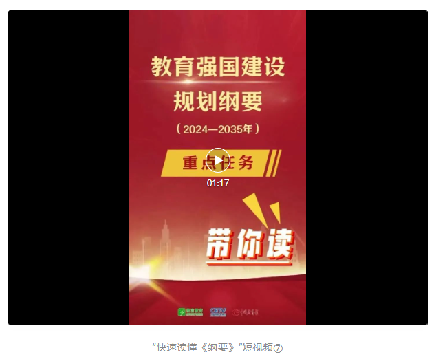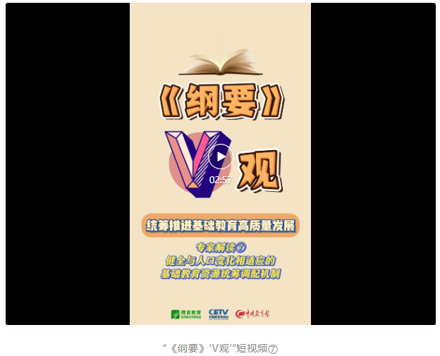 《教育强国建设规划纲要(2024—2035年)》(以下简称《纲要》)日前正式发布,明确了38条重点任务。教育部新媒体矩阵推出“解码《纲要》”栏目逐一解读。今天,解码第七条“健全与人口变化相适应的基础教育资源统筹调配机制”,一起来看3个视频——
