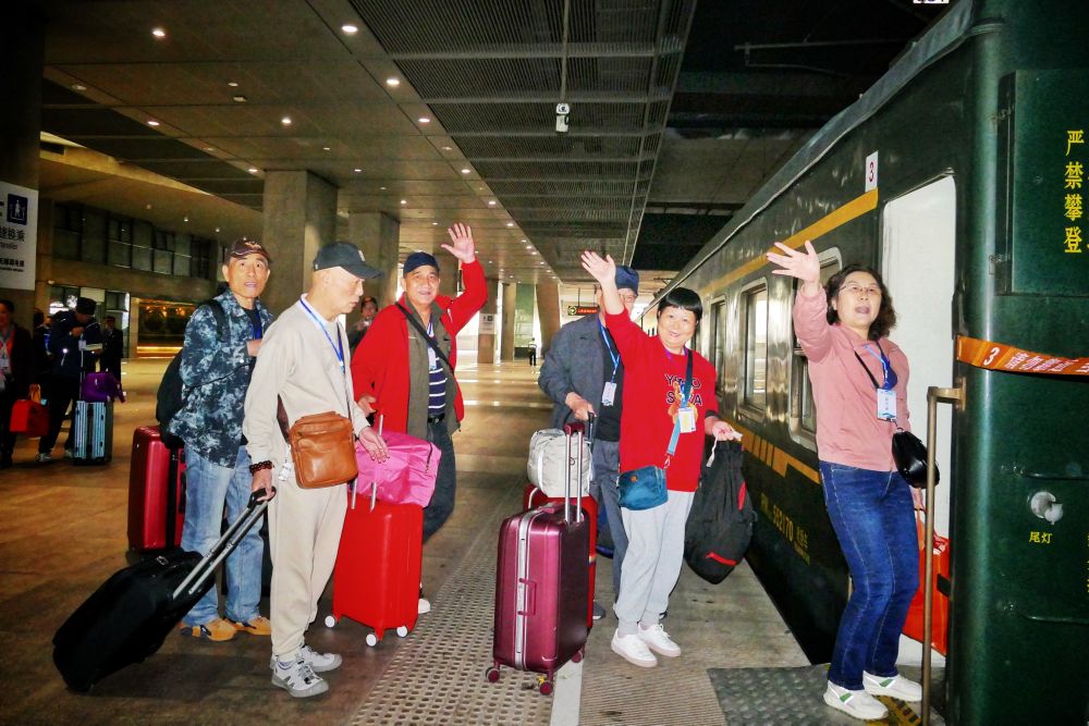 2024年4月20日,银发旅客在上海南站乘坐专列旅游。新华社发(刘卫兴摄)