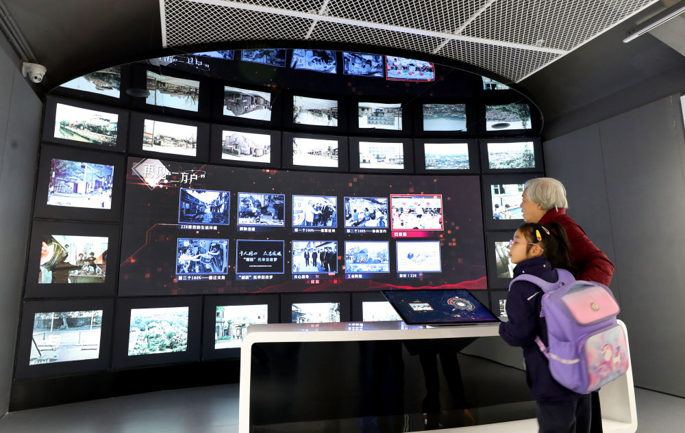 市民在杨浦区228街坊内的上海工人新村展示馆内参观。新华社记者方喆 摄