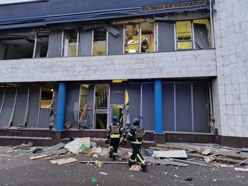 2025年1月18日,在乌克兰首都基辅市,乌国家紧急情况局工作人员在空袭受损的建筑内搜救。新华社发(罗曼·佩图什科夫摄)