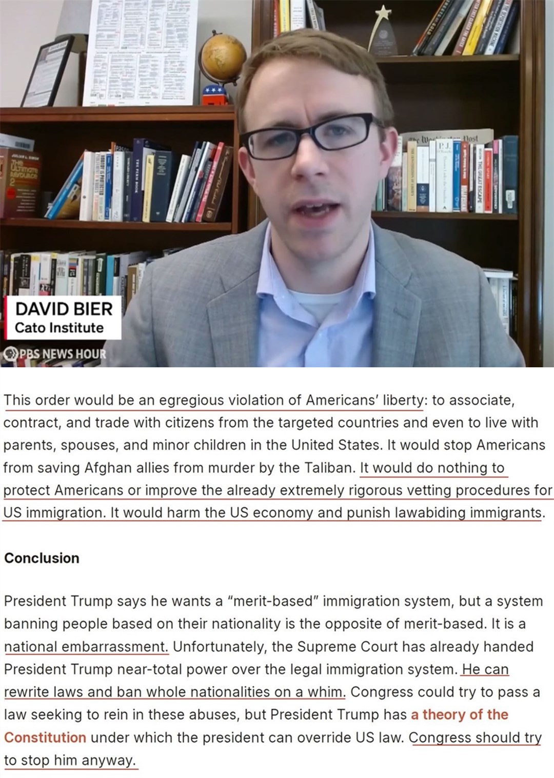 拜尔在报告最后总结说,特朗普称他想要建立一个“基于能力”的移民系统,但他正在打造的这个基于国籍的签证等级缺席与他所宣称的恰恰相反。
