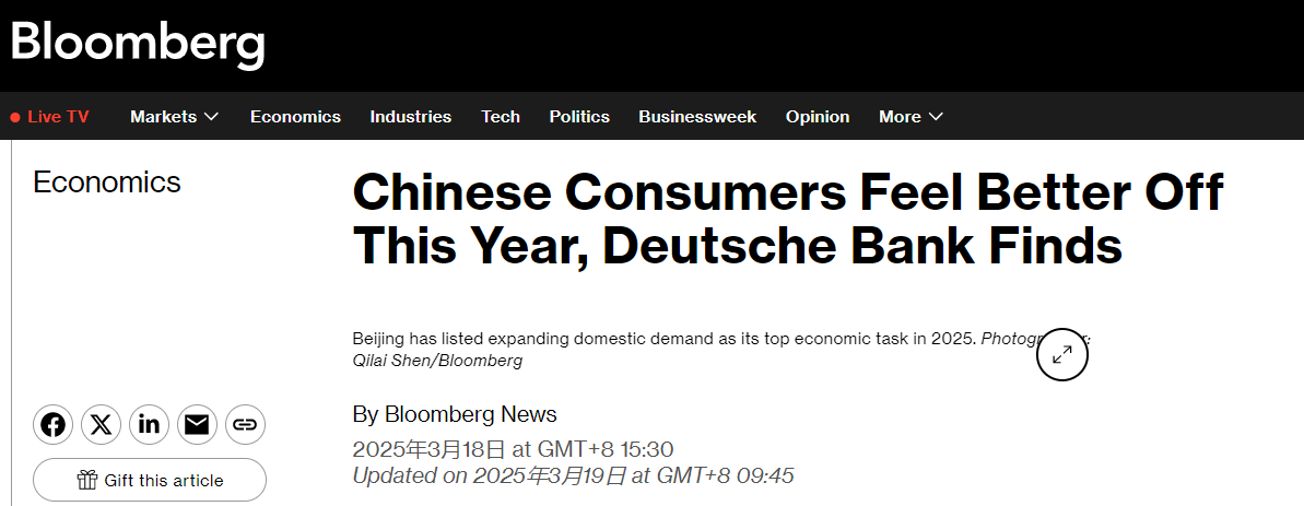 美国彭博社报道称,中国提振消费行动取得成效,中国消费者情绪显著改善。德意志银行的最新调查显示,中国消费者情绪较去年大有改善。根据德银发布的报告,本季度接受调查的受访者中,约有54%表示他们感觉自己的财务状况比一年前更好,这一比例高于2024年的平均值44%。调查结果还显示,预计未来一年收入增加的受访者比例升至60%,为连续第二个季度上升。这份调查结果表明,中国提振家庭信心和消费的行动正取得越来越多成果。