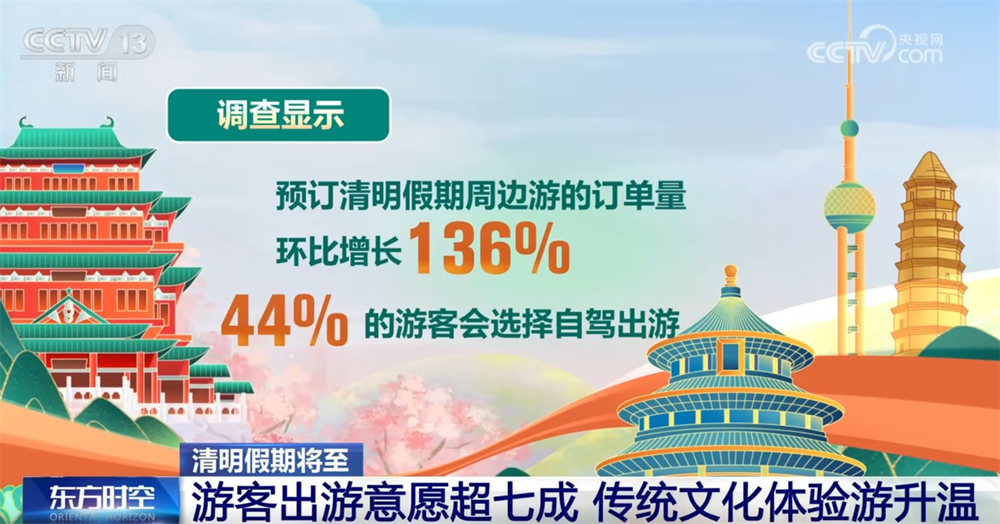 中国旅游研究院院长戴斌称:“这个清明节假期,出游意愿达到74%,加上踏青赏花、登山、徒步以及民俗体验,预计每一天的出游人数都会超过4000万人次。”