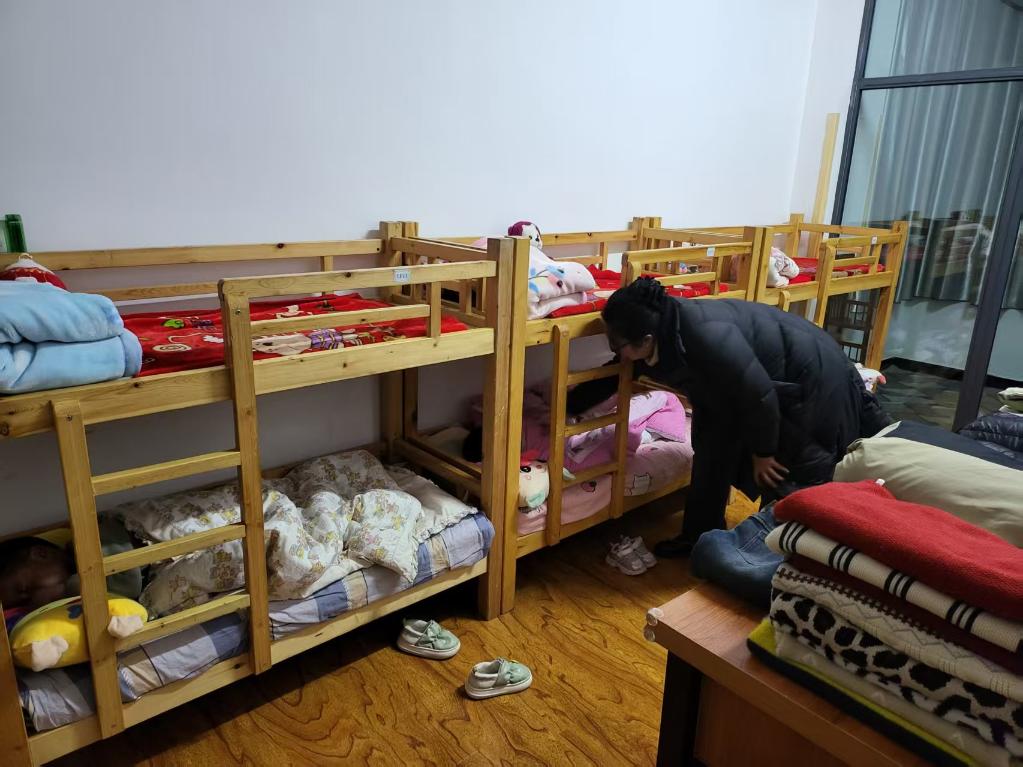 2025年3月17日,周雪在儿童福利院宿舍巡查。(受访者供图)