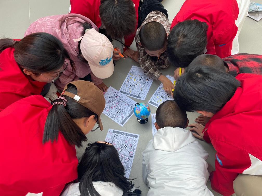 2024年8月31日,张晶晶带领西部计划志愿者到儿童福利院和孩子们做益智活动。(受访者供图)
