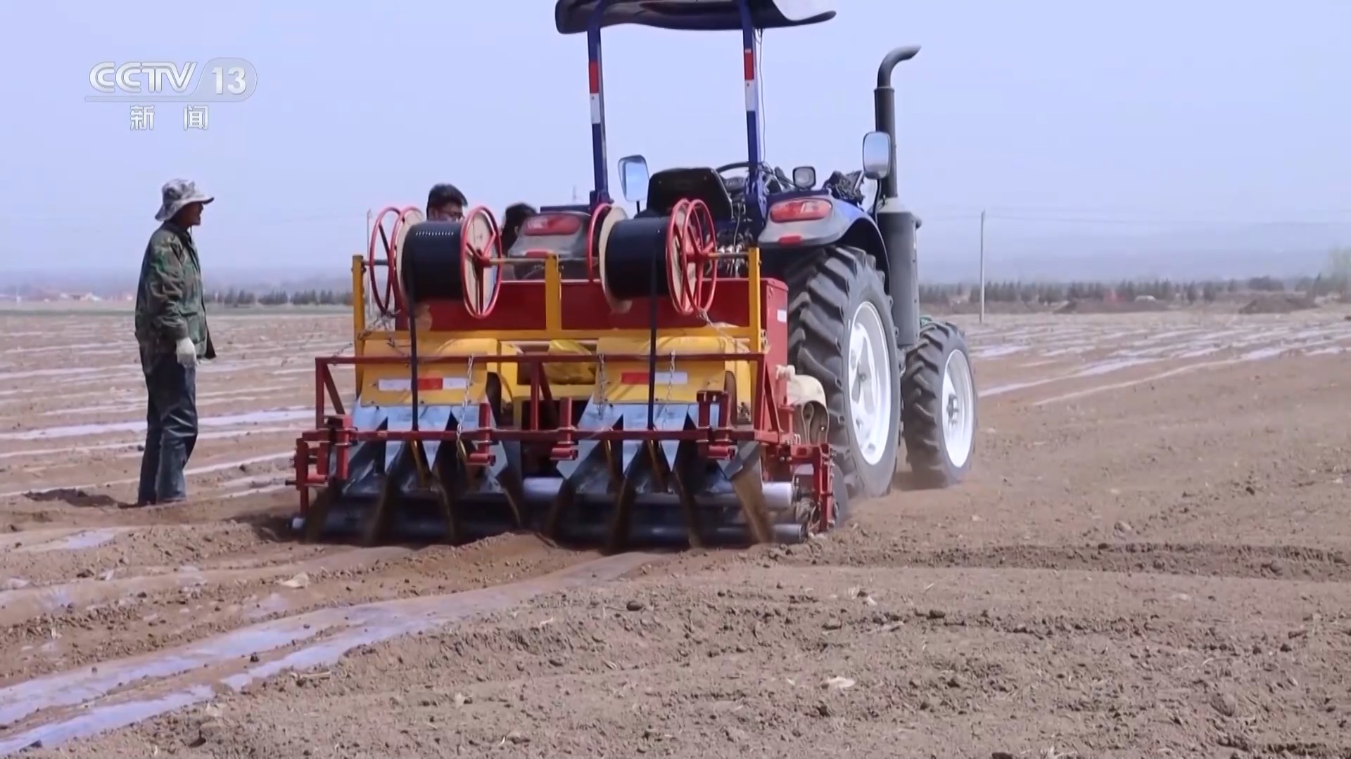 目前,当地正在进行翻耕土地、覆膜等作业,为后续的玉米种植提供有利基础条件。在技术人员设定参数后,搭载北斗导航系统的无人驾驶播种机按规划路线灵活地转弯、掉头,机身配备的智能传感器可以实时监测土壤湿度、种子间距等关键数据。传统覆膜、播种作业需要3人配合,每天作业量是15亩,现在,一台兼具覆膜功能的机械一天就能完成60亩。