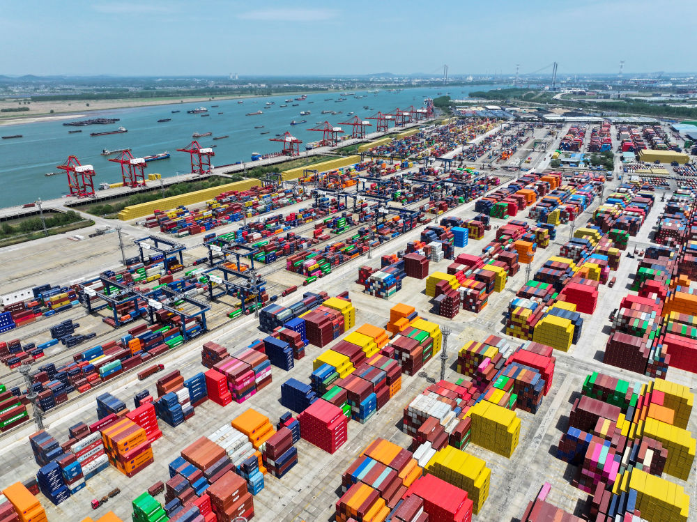 4月16日拍摄的江苏省港口集团南京港龙潭港区集装箱码头(无人机照片)。
