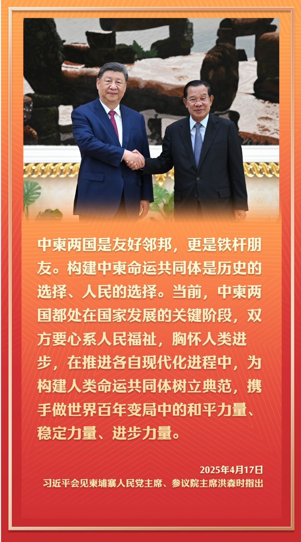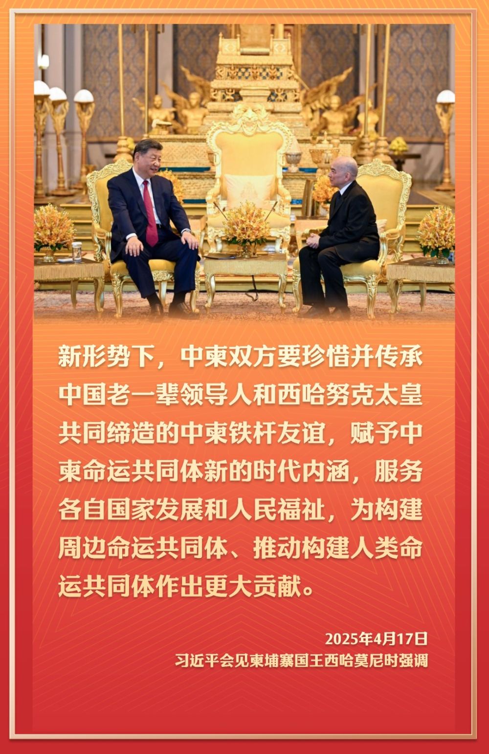 4月17日,应柬埔寨国王西哈莫尼邀请,国家主席习近平抵达金边,开始对柬埔寨进行国事访问。