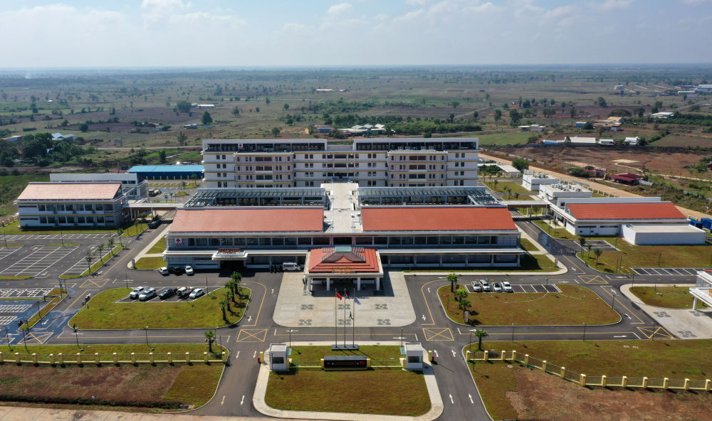 2022年2月17日在柬埔寨特本克蒙省新区拍摄的中国援柬埔寨特本克蒙省医院。