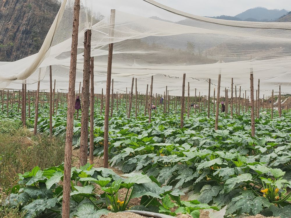 近日,记者来到贵州省黔西南布依族苗族自治州望谟县蔗香镇乐康村,数百亩蔬菜长势正盛,小瓜、茄子等蔬菜已开始陆续上市。