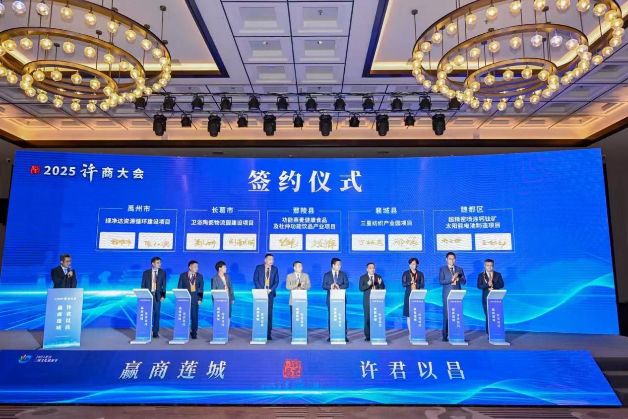 【大河财立方 记者 朱娟 段伟朵 闫文瑞 文 朱哲 摄影】4月29日,以“赢商莲城 许君以昌”为主题的2025许商大会在许昌举行。在大会举行的签约仪式上,共达成合作项目37个,总投资额175.1亿元,涵盖先进制造、新型材料、生物医药、现代轻纺、绿色食品等战略性新兴产业领域,为许昌经济高质量发展注入新动能。