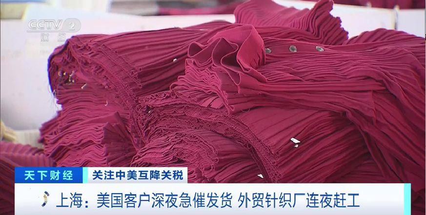 中美关税调整后,上海的一家针织厂接到了美国客户的催单,目前正在抓紧赶工生产。