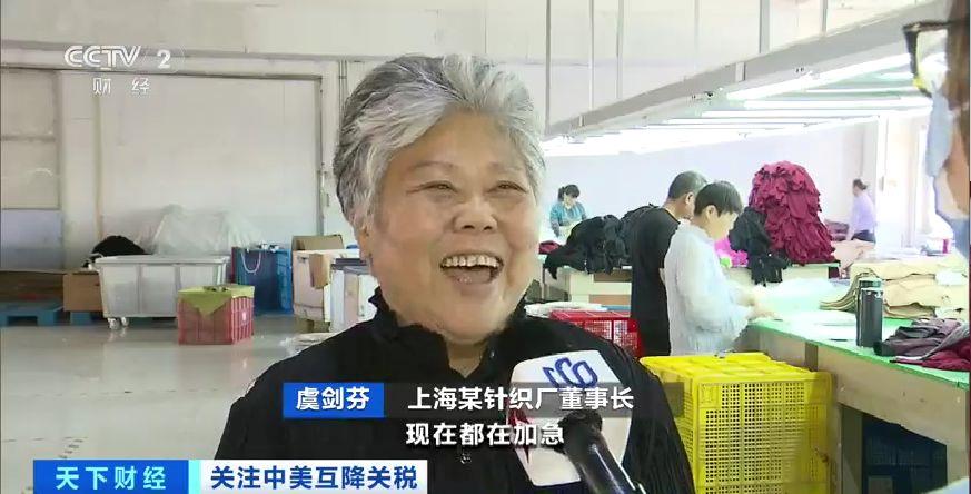 上海某针织厂董事长虞剑芬:第一反应很高兴,一块大石头落地了,晚上就开始加紧告诉外方单位,赶紧把商标印出来,赶紧把纽扣打出来,现在都在加急。