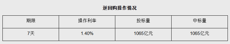 【大河财立方消息】7月7日,中国央行开展1065亿元7天期逆回购操作,投标量1065亿元,中标量1065亿元,操作利率为1.40%,今日有3315亿元逆回购到期,当日实现净回笼2250亿元人民币。