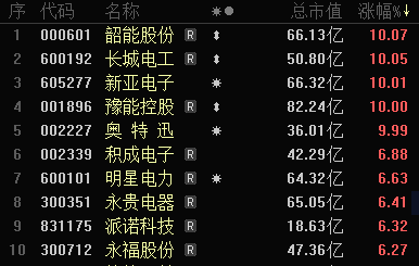 【大河财立方消息】7月7日午后,充电桩概念股密集大涨。韶能股份、长城电工、新亚电子、豫能控股、奥特迅等板块内个股快速拉升至涨停。