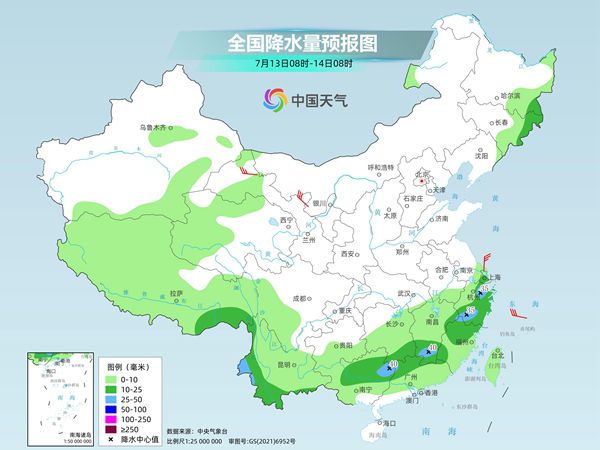 中央气象台预计,今天,福建东部沿海和南部、广东中南部、广西中南部、海南岛北部、台湾岛南部、云南中南部、四川盆地南部、江西南部、湖南南部、江苏南部、浙江北部、上海、内蒙古中部、黑龙江中部等地部分地区有大到暴雨,其中,广东东北部、福建东南部等地部分地区有大暴雨。