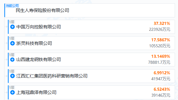 官网信息显示,民生保险于2003年6月18日正式开业,注册资本金60亿元,总部位于上海。天眼查显示,民生保险第一大股东为中国万向控股有限公司,持股比例为37.32%。