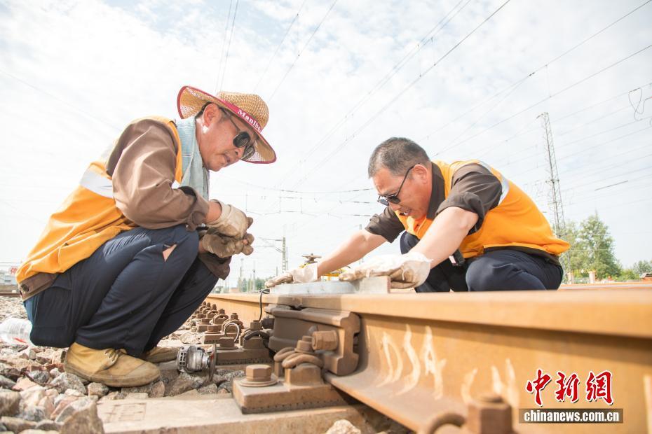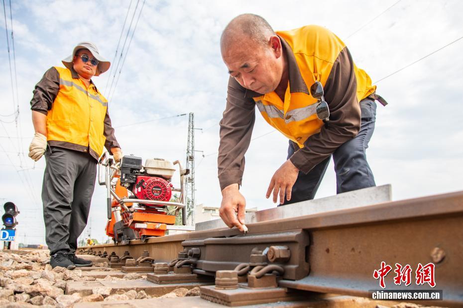 连日来,河南迎来大范围强对流天气。8月11日,中国铁路郑州局集团有限公司南阳工务段抢抓雨后设备提质“黄金期”,组织37名作业人员重点对南阳西站铁路线进行检修,消除连续降雨对线路设备的影响,为线路“舒筋通络”,确保列车运行安全畅通。图为作业人员正在检修线路。王宽宁磊 摄