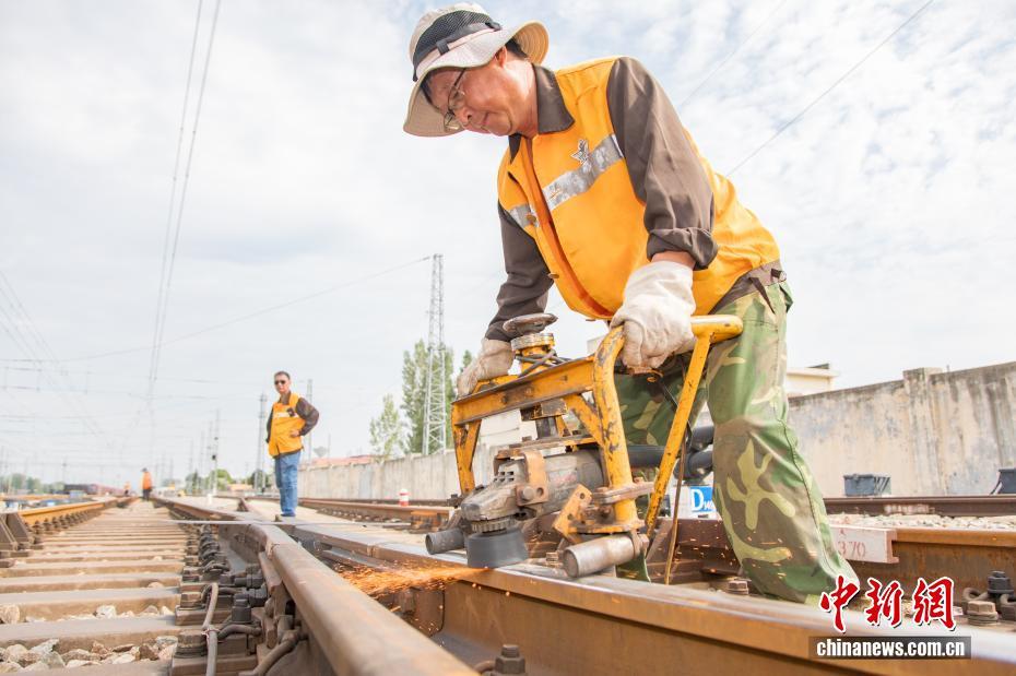 连日来,河南迎来大范围强对流天气。8月11日,中国铁路郑州局集团有限公司南阳工务段抢抓雨后设备提质“黄金期”,组织37名作业人员重点对南阳西站铁路线进行检修,消除连续降雨对线路设备的影响,为线路“舒筋通络”,确保列车运行安全畅通。图为作业人员对钢轨道心进行打磨。王宽宁磊 摄