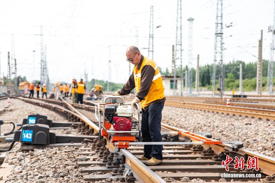 连日来,河南迎来大范围强对流天气。8月11日,中国铁路郑州局集团有限公司南阳工务段抢抓雨后设备提质“黄金期”,组织37名作业人员重点对南阳西站铁路线进行检修,消除连续降雨对线路设备的影响,为线路“舒筋通络”,确保列车运行安全畅通。图为作业人员对焊接部位打磨情况进行观测。王宽宁磊 摄