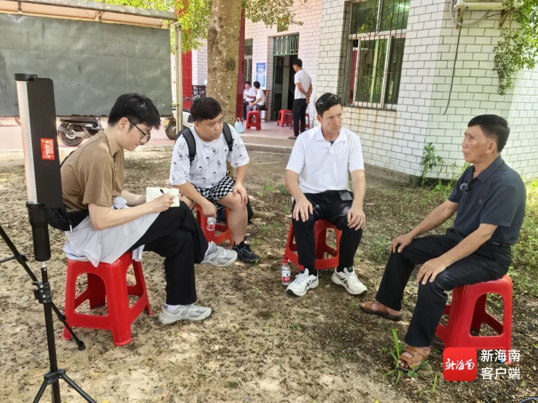 布兰登(右二)再回老欧村。记者胡诚勇 摄