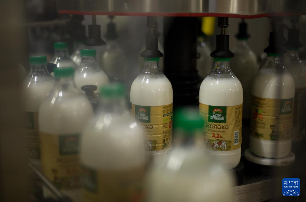 这是9月24日在俄罗斯乌德穆尔特共和国首府伊热夫斯克一家乳制品生产企业拍摄的牛奶生产流水线。新华社记者 孟菁 摄