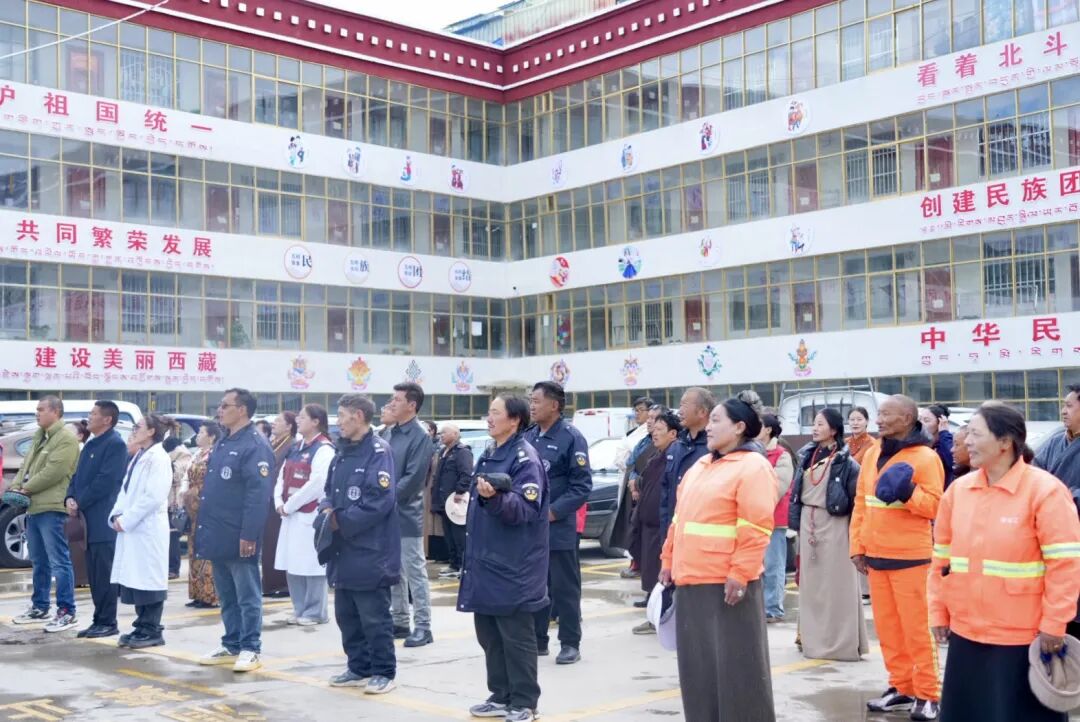 10月1日,那曲市色尼区黑河街道塔恰拉姆社区举行庆祝中华人民共和国成立76周年“升国旗、唱国歌”仪式。 记者 万靖 摄