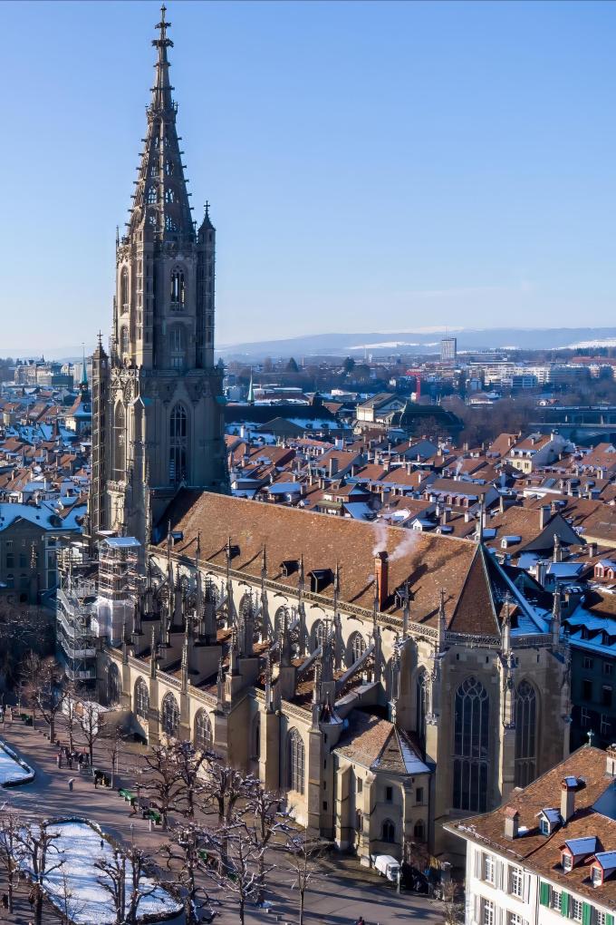 这是2024年1月20日在瑞士伯尔尼拍摄的城市风光(无人机照片)。新华社记者孟鼎博摄