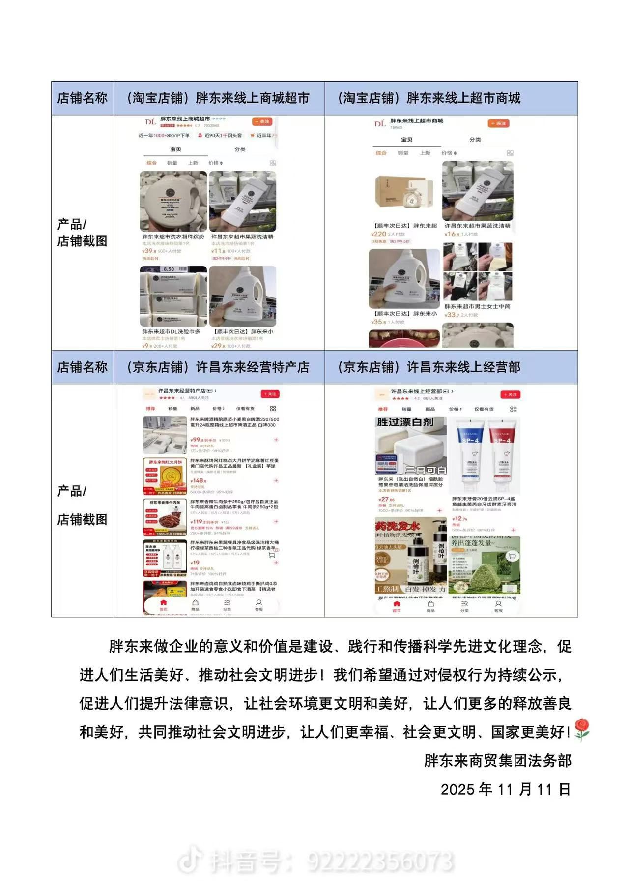 胖东来表示,随意侵犯他人合法权益,利用他人获取不正当利益,是对道德底线的漠视,更是严重的违法行为,伤害社会正义和社会信任。胖东来希望通过持续对侵权案件的处理进展和处理结果的公示,为社会提供真实、可参考的案例,带动社会力量共同打击处理侵权行为。