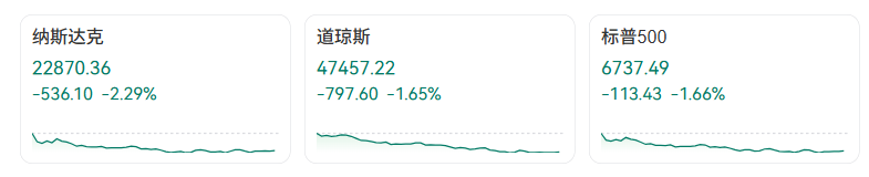 【大河财立方消息】当地时间11月13日,美股三大指数集体收跌,道琼斯指数跌1.65%,标普500指数跌1.66%,纳斯达克综合指数跌2.29%。