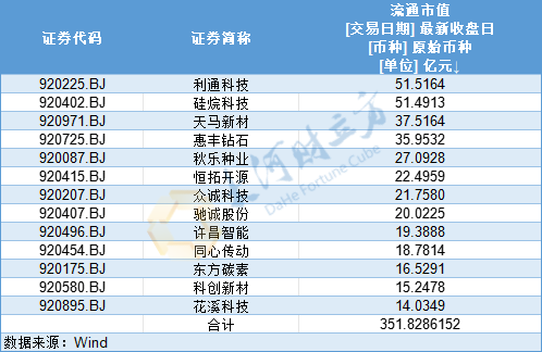 在市值方面,截至11月13日收盘,河南13家北交所上市企业合计市值约351.83亿元。其中,9家企业市值超过20亿元。