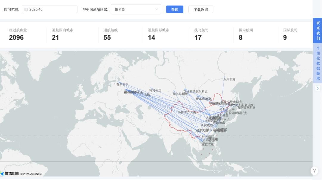 航班管家DAST数据显示,今年10月中俄往返航班量2096班次,与2024年同期相比增长24.2%,与2019年同期相比增长6.1%。