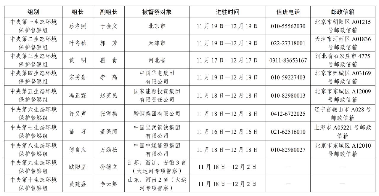 根据工作安排,8个例行督察组进驻时间1个月,2个专项督察组进驻时间两周左右。进驻期间,8个例行督察组分别设立专门值班电话和邮政信箱,受理被督察对象生态环境保护方面的来信来电信访举报,受理举报电话时间为每天8:00—20:00。督察组全体成员将严格执行纪律要求,接受被督察对象和社会监督。在后续工作中,将严格落实中央有关要求,进一步为基层减负,简化程序、优化流程,不断提高督察工作的精准性、针对性,确保有序有效完成督察任务。