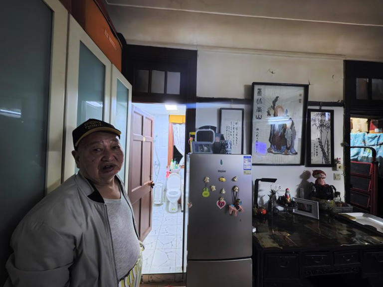 10月23日,愚园路1407弄小区居民李老伯站在自家改造完成的独用卫生间门口。愚园路1407弄是历史风貌建筑保护小区,其采取抽户改造的方式,为居民增设独立卫生设施。新华社记者 方喆 摄