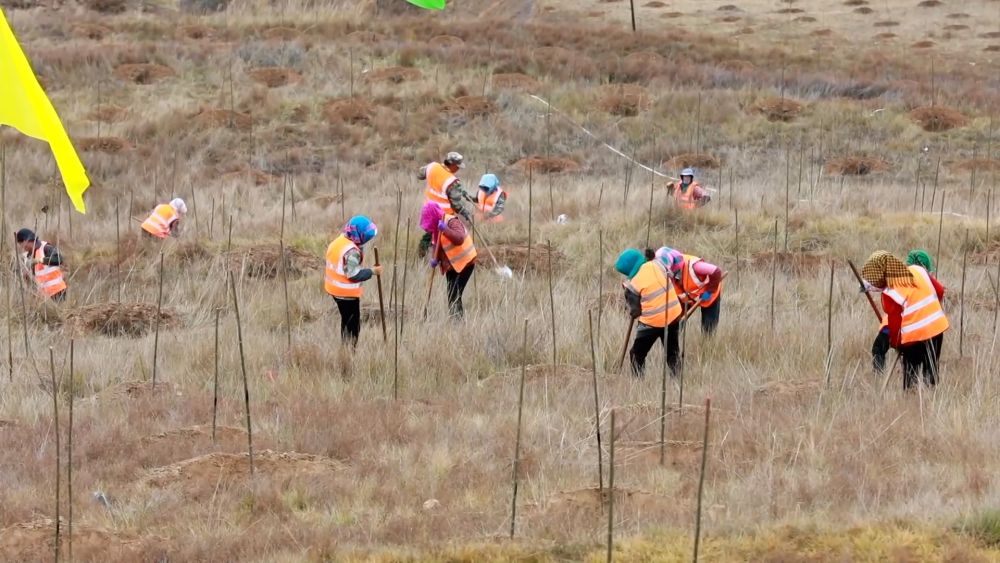 初冬时节,当地抢抓秋冬季苗木扎根的黄金窗口期,动员干部群众、志愿者及林草专业团队进行植树造林活动。