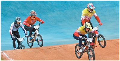 运动员在十五运会竞速小轮车比赛中。本报记者 蒋雨师 摄