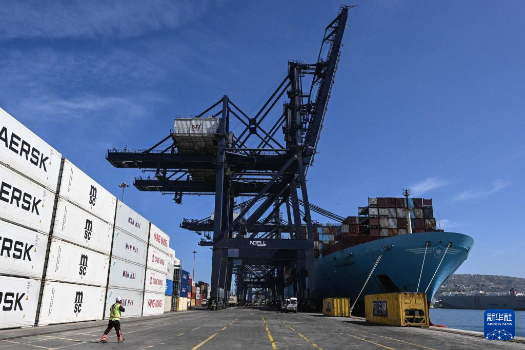 11月18日,在智利圣安东尼奥港,工人们正在进行装卸作业。新华社发(豪尔赫·比列加斯摄)