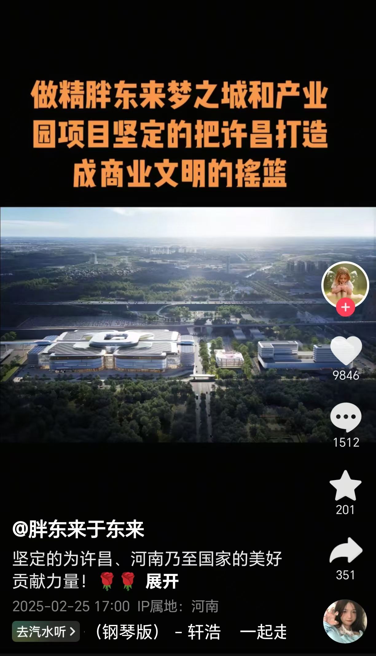 据大河财立方此前报道,今年2月25日,于东来个人社交平台公布一张商业项目效果图,并配文:做精胖东来梦之城和产业园项目,坚定把许昌打造成商业文明的摇篮。