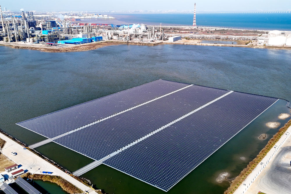 11月18日拍摄的中国石化青岛炼化公司漂浮式光伏项目。新华社发(张进刚摄)