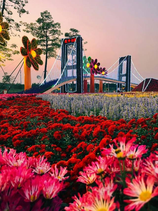 小榄菊花会上的大型造景伶仃宏波园,生动复刻深中通道这一意义非凡的世界级跨海集群工程。图源:小榄菊花会 黎方清 摄