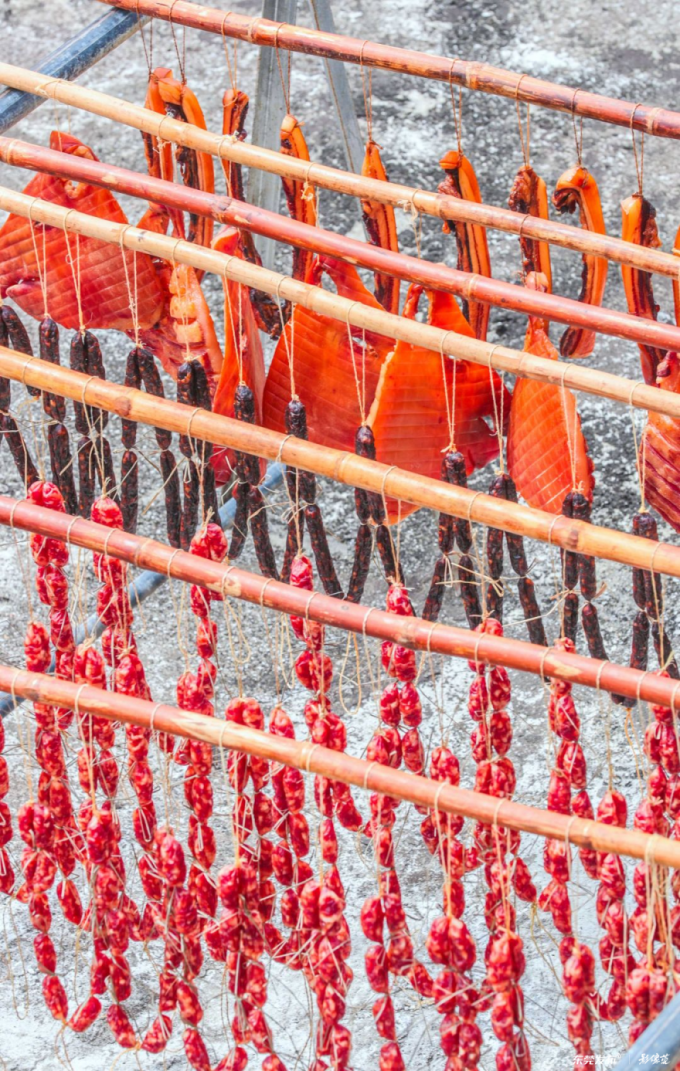 在秋风与暖阳中,腊味轻垂,铺展出烟火气满满的传统晾晒图景。图源:东莞发布 李淦斌 摄