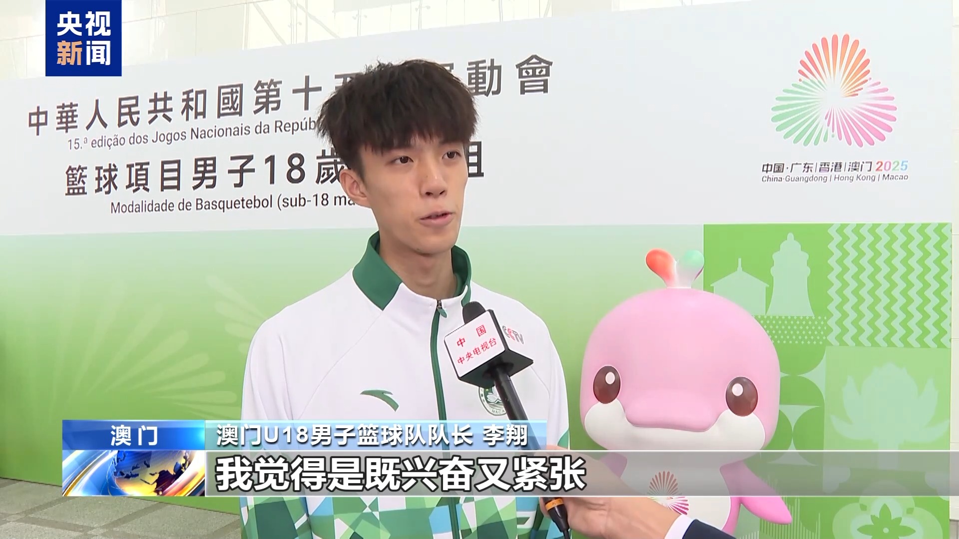 澳门U18男子篮球队队长李翔:(全运会)在家门口办,我觉得既兴奋又紧张。我们也认识了不少的朋友,跟内地也有了更多的交流。所以说,我觉得这次是非常好的一个机会和经验。