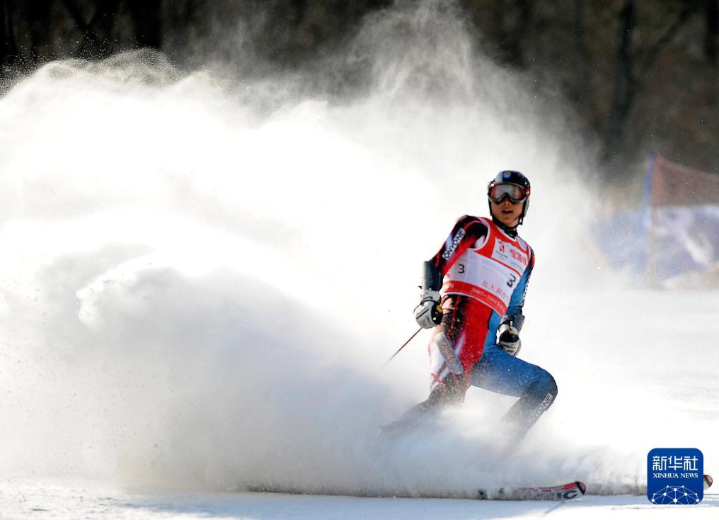 2008年2月28日,全国高山滑雪锦标赛男子大回转比赛在吉林市北大湖滑雪场进行,图为黑龙江省雪上训练中心选手李光旭在比赛中。新华社记者 王昊飞 摄