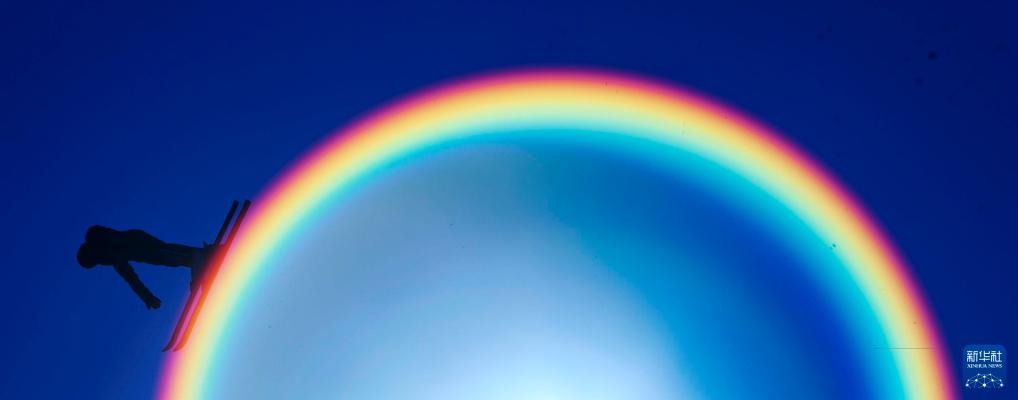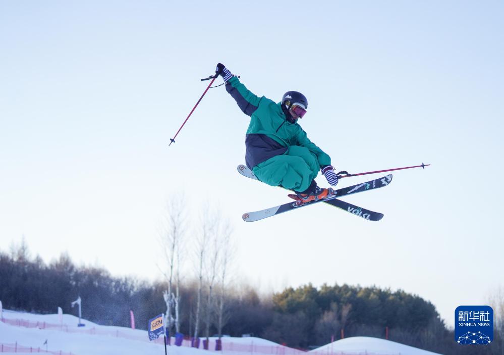 2024年12月31日,一名滑雪爱好者在吉林市万科松花湖度假区举办的滑雪趣味跳高赛中。新华社记者 颜麟蕴 摄