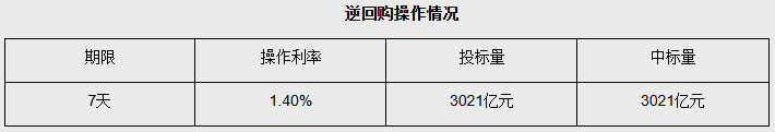 【大河财立方消息】11月25日,央行公告称,开展3021亿元7天期逆回购操作,投标量3021亿元,中标量3021亿元,操作利率为1.40%,此外今日央行还将开展10000亿元MLF操作。