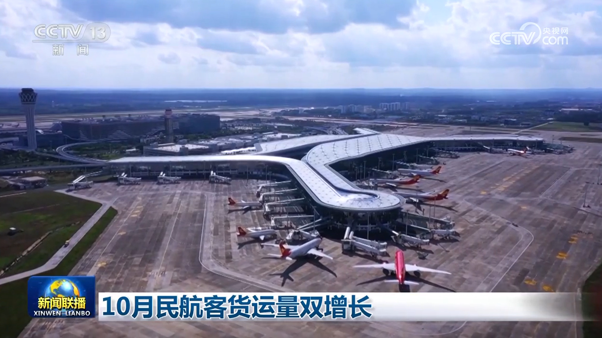 央视网消息(新闻联播):记者11月25日从民航局了解到,10月,我国民航共完成运输总周转量146亿吨公里,国内航线和国际航线旅客运输量、货邮运输量均呈现增长态势。