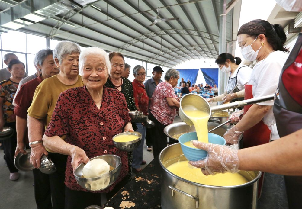 焦作市高新区苏家作乡苏家作村幸福院老年人在幸福院就餐。(王梦梦 摄)