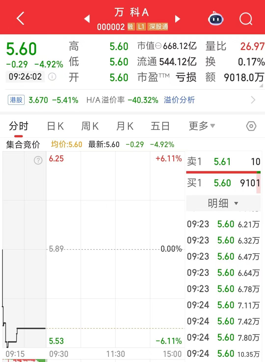 【大河财立方消息】11月27日,万科A跳空低开,跌4.92%,股价创2015年8月以来新低;港股万科企业低开5.41%。